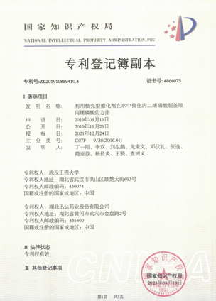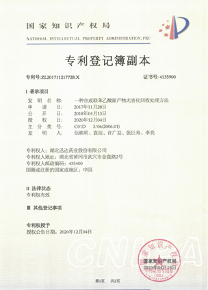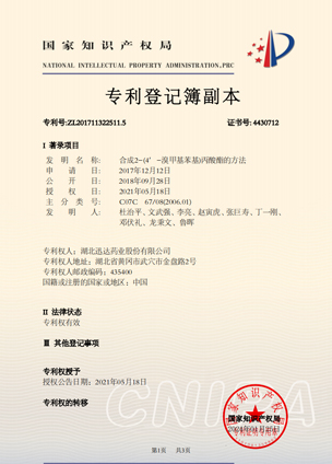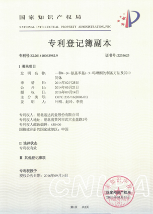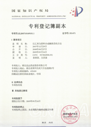 公司擁有一支高素質(zhì)科研隊(duì)伍,具備專(zhuān)業(yè)而高效的研發(fā)能力。近幾年,共取得科技成果30項(xiàng),其中9項(xiàng)獲國(guó)家發(fā)明專(zhuān)利,2項(xiàng)獲湖北省科技進(jìn)步獎(jiǎng),開(kāi)發(fā)新產(chǎn)品8個(gè),綠色合成、手性合成和催化等技術(shù)引領(lǐng)行業(yè)發(fā)展。主要銷(xiāo)往歐美、日本、韓國(guó)、中東、印度等40多個(gè)國(guó)家和地區(qū)。